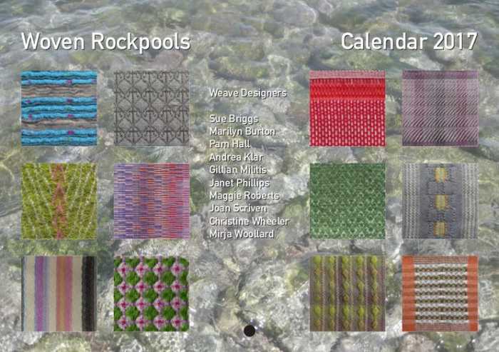 Each weave designer chose a Rockpool species as the inspiration source to design and weave 2.5 meters of cloth. These lengths of cloth were then cut into 100, 10cm x 10cm squares. Each month has this actual cloth attached to the calendar page.